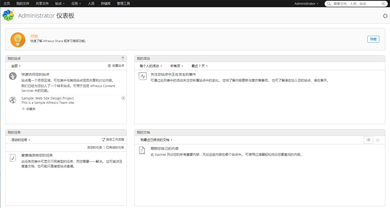 • 后台仪表盘 Alfresco台仪表盘