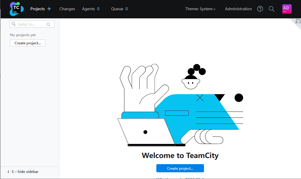 依次完成创建账号等后续步骤后,登录 TeamCity 后台