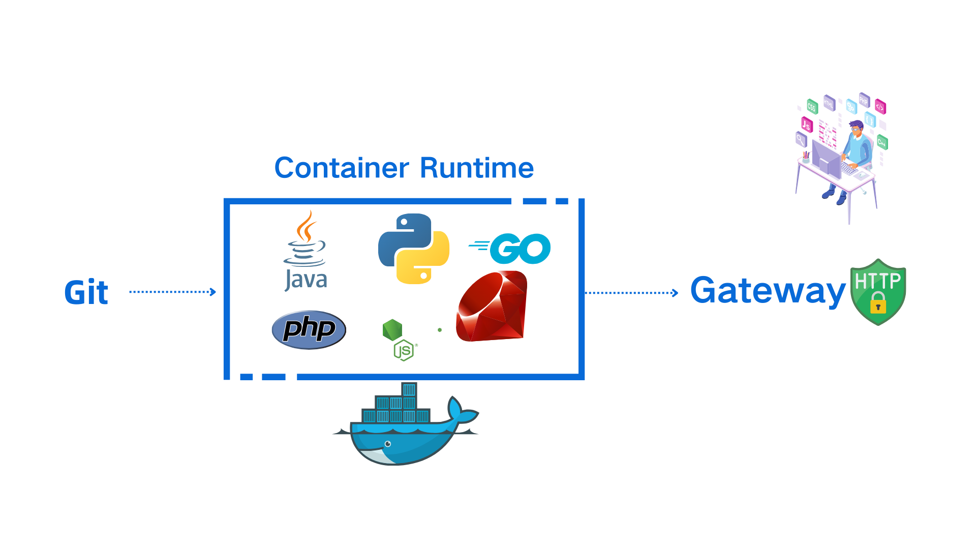 | PHP, Node.js, Java, Python, Ruby, .NET | Web application, Web development framework |